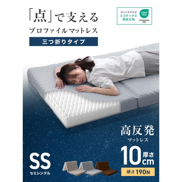 マットレス セミシングル 三つ折り 高反発 腰痛対策 折りたたみ プロファイルマットレス ベッドマットレス 極厚10cm 硬さ 190N 布団 敷き布団 敷布団 1年保証