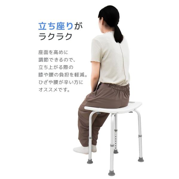 身体に合わせて6段階の高さ調節ができ、立ち上がる際の膝と腰の負担を軽減できます。
