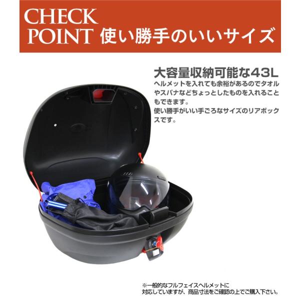 バイク リアボックス 43L リアボックス トップケース バイクボックス バイク用ボックス 着脱可能式 43リットル 大容量 口コミ 高評価