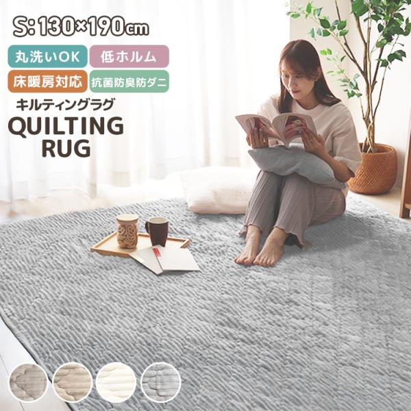 ラグ カーペット 洗える 190×130cm フランネル キルトラグ オールシーズン 床暖房対応 抗菌 防臭 防ダニ加工 ラグマット