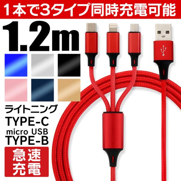 iPhone 充電ケーブル 3in1 type-c ライトニング Micro USB充電ケーブル 急速充電 1.2M マイクロusb ナイロン iOS Android Macbook iPhone15