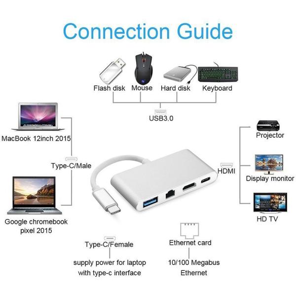 iFormosa USB-C to USB 3.0 HDMI RJ45 LAN Gigabit 1000Mbps アダプター シルバー IF-USBCTO4