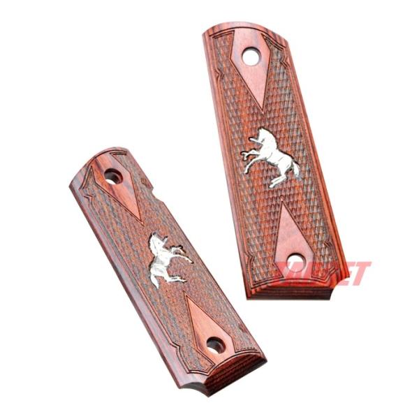 ☆アルタモント 1911 フルサイズ用 木製グリップ パネル ダイヤチェッカー ランパンホース付 スーパーローズウッド (ALTAMONT COLT M1911A1 ガバメント)