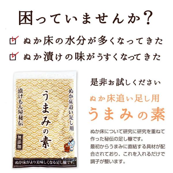 この素を使うと、ぬか床の味わいや風味、うま味を落とすことなく、ぬかを継ぎ足すことができます。むしろ、漬物のうまみが増すほどです。それから、ほんのりとですが甘みも出ます。もちろん化学調味料も甘味料も一切使用しておりません。【完全無添加】の逸品です。 爆買