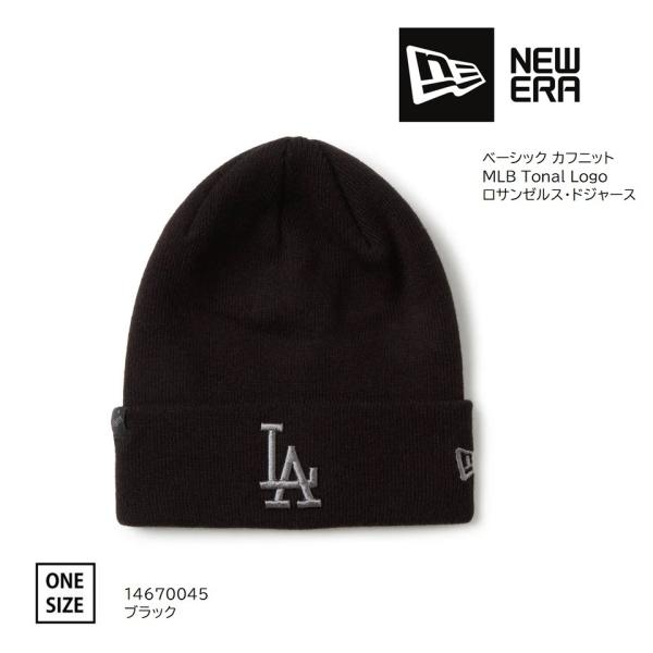 NEWERA ベーシック カフニット MLB Tonal Logo ロサンゼルス・ドジャース ブラック ( 14670045 )『ポスト投函対応商品(1/1)』ニット帽