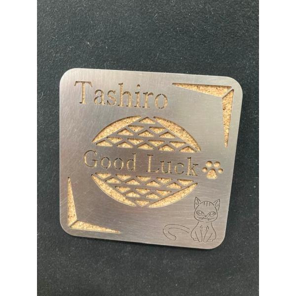 名入れ ねこ コースター プレゼント ギフト ステンレス ノベルティ 記念品 猫 お祝い ホームパーティー コルク 金属