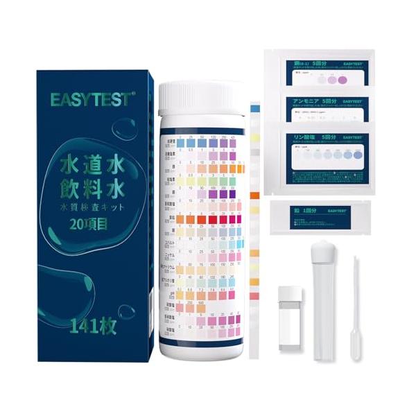 EASYTEST 20項目 試験紙 水質検査キット 141PCS 飲料水 飲用水 井戸水 水道水 浄水設備の日常点検 20項のパラメータを迅速的に検出