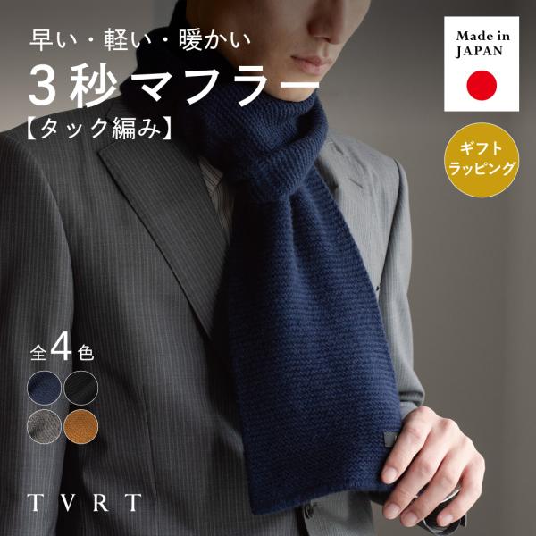 3秒マフラー タック編み メンズ 薄手 ミニマフラー 男性 日本製 秋冬 防寒 ビジネス 保温 柔らかい ギフト プレゼント 爆買 Tps-191【タバラット】