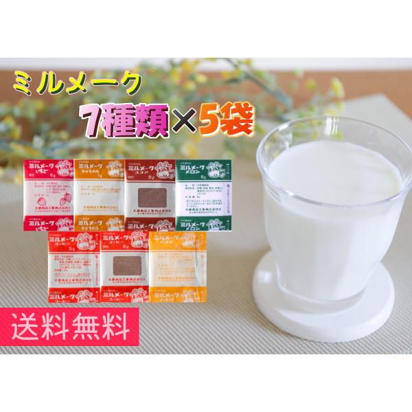 ミルメーク 7種類×5袋セット 計35袋入 送料無料 コーヒー 顆粒 粉末 いちご キャラメル メロン バナナ ココア