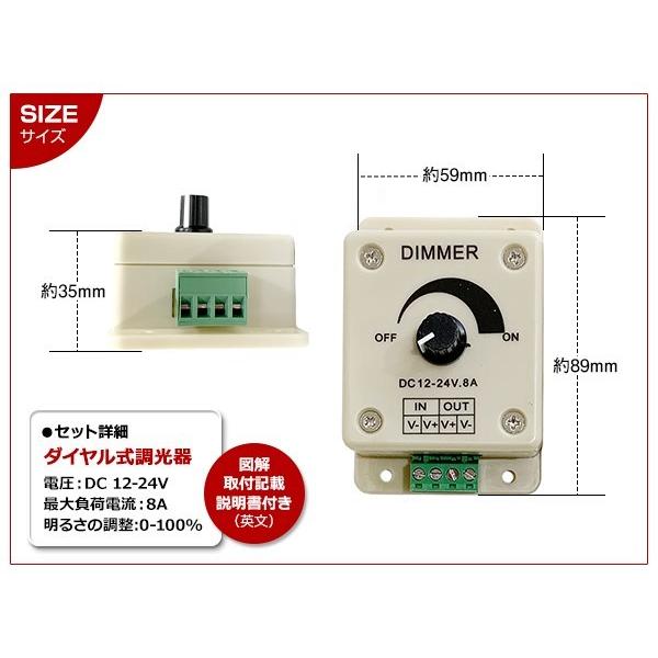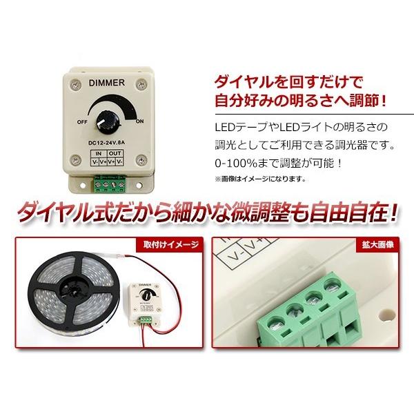 つまみを回すだけでLEDテープライトなどの明るさを0-100%まで無段階で調整可能で御座います。