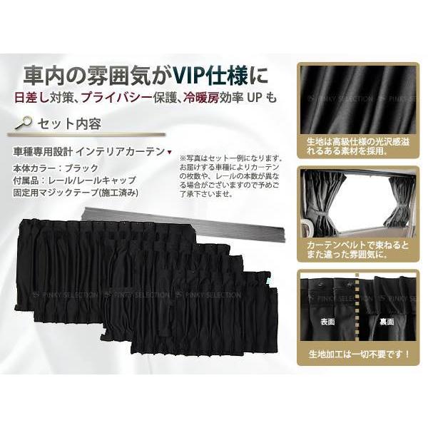 高級仕様 インテリアカーテン ハイエース ワイド 5ドア 200系14P ブラック 黒 カーテンレール付セット