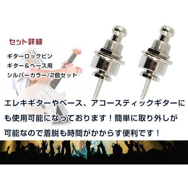 メール便 落下防止に!ギターストラップロックピン エレキギター アコギ ベース ロックピン シルバー 銀 2個セット エンドピン ストラップピン