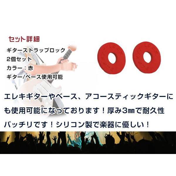 メール便 落下防止/ライブ用ギターストラップロック エレキギター アコギ ベース シリコンゴム製 レッド 赤 2個セット エンドピン ストラップピン