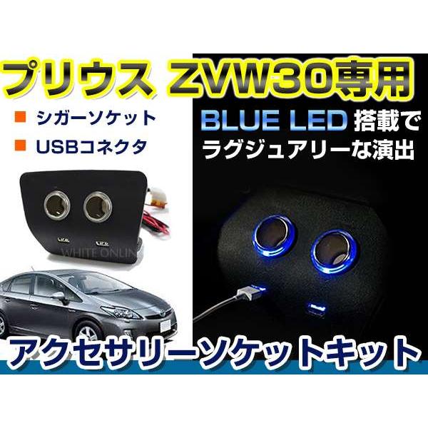 プリウス ZVW30系 増設キット シガーソケット 電源 USBポート LED ブルー コンソール パネル