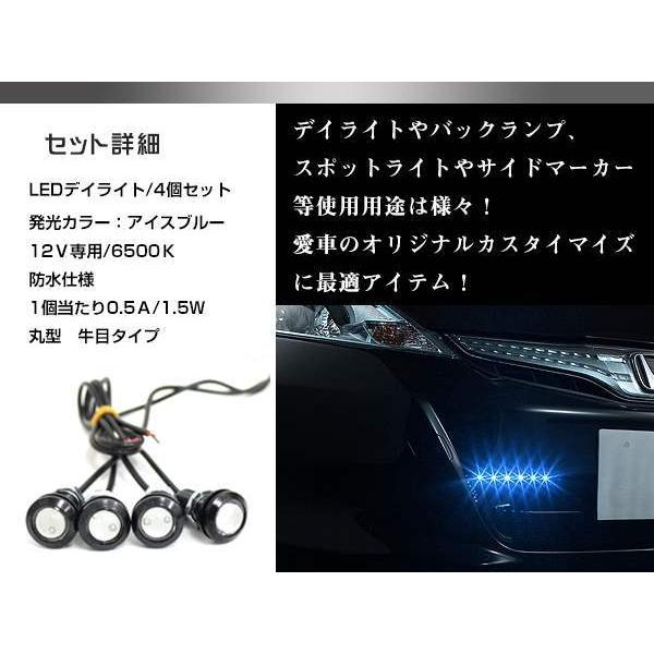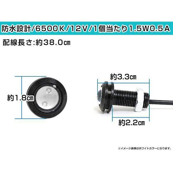 12V 超小型 イーグルアイ LED 18mm スポットライト アイスブルー/水青 常時点灯 防水仕様!ブラックボディ 牛目 4個セット