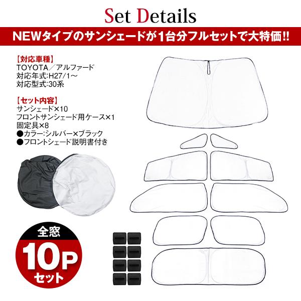アルファード ヴェルファイア 30系 前期後期 全窓分 簡単取付 ワンタッチサンシェード ブラック×シルバー フルセット 10P 遮光 断熱