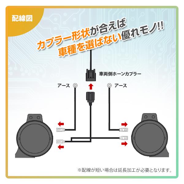 配線加工無しで純正ホーン配線を2分岐できるハーネスとなります。