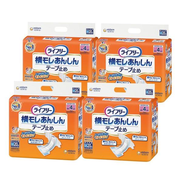 ライフリー テープ止めおむつ 横モレあんしんテープ止め Mサイズ 80枚(20枚×4) 4回吸収 寝て過ごすことが多い方 無地ケース品