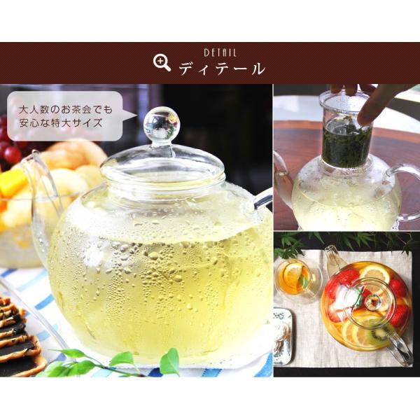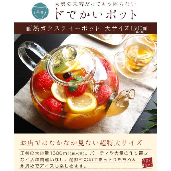 耐熱ガラスポット 大サイズ 1500ml(満水:約1500ml 適正:約1200ml) ティーポット ガラス おしゃれ シンプル 耐熱ガラス 茶こし付き
