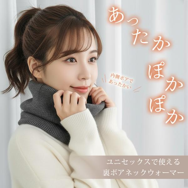 ネックウォーマー 裏地ボア リブ編み ユニセックス