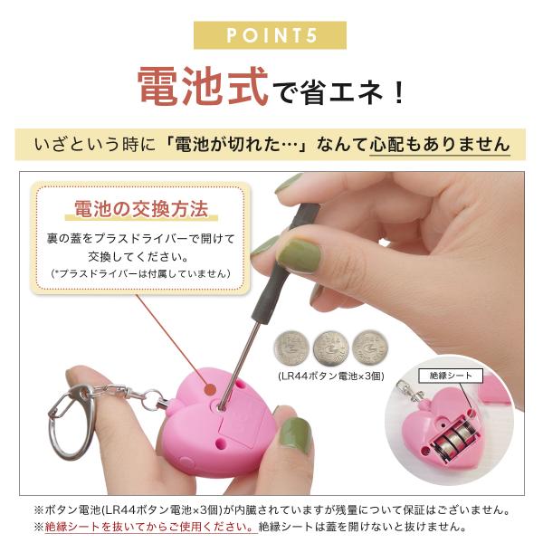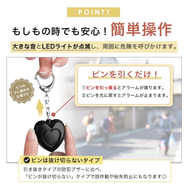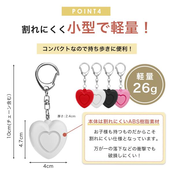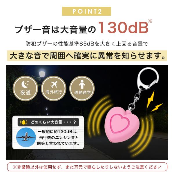 電池式 防犯ブザー 防犯アラーム 子供 小学生 女の子 かわいい ハート 130dB 大音量 LEDライト 防犯グッズ ライト付き 超小型 ボタン電池