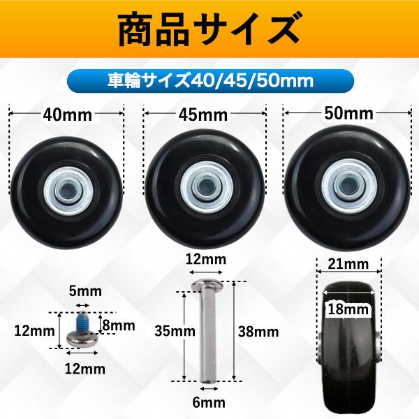 スーツケース タイヤ 交換 キット セット キャスター交換 車輪 修理 キャリーケース 取り替え 4個 40mm 45mm 50mm 54mm