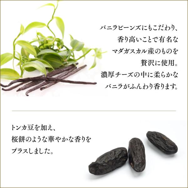 香りの余韻をお楽しいいただけるよう、バニラビーンズをふんだんに使用し、箱から空けた瞬間からバニラの香りをお楽しみいただけます。