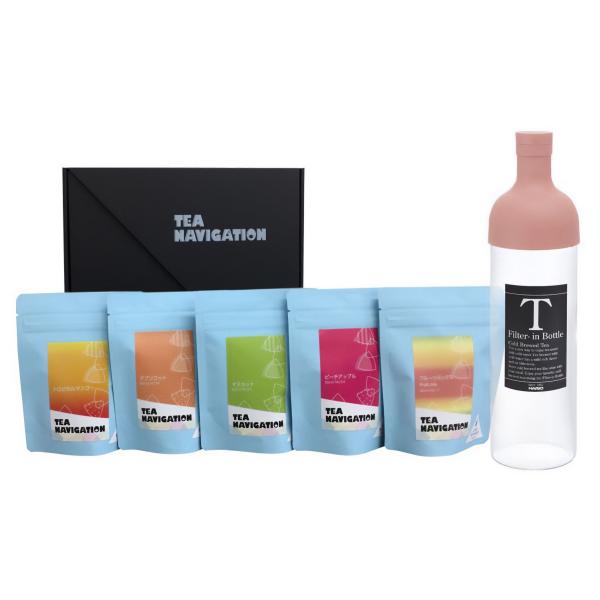 TEA NAVIGATION 紅茶 ティーバッグ 水出し アイスティー クイーンズセット【HARIO(ハリオ) フィルターインボトル スモーキーピンク 750mlセット】ギフト包装済