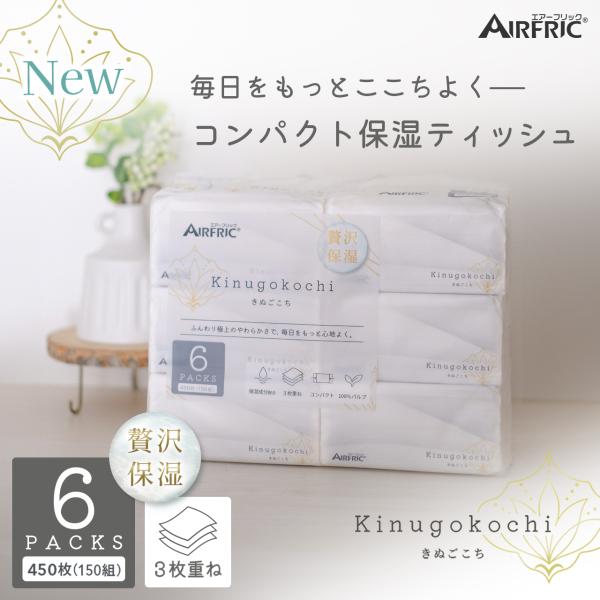 AIRFRIC Kinugokochi きぬごこち ソフトパック ティッシュペーパー 保湿 コンパクト 箱なし 大容量 家庭用 3層 450枚 30個 (6P×5) 150組 ST002