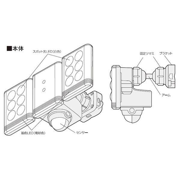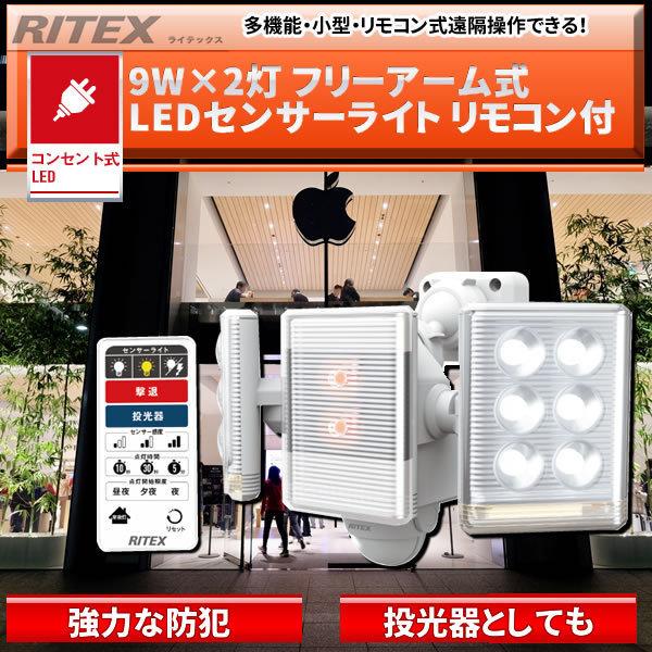 9W×2灯 フリーアーム式LEDセンサーライト リモコン付 LED-AC2018