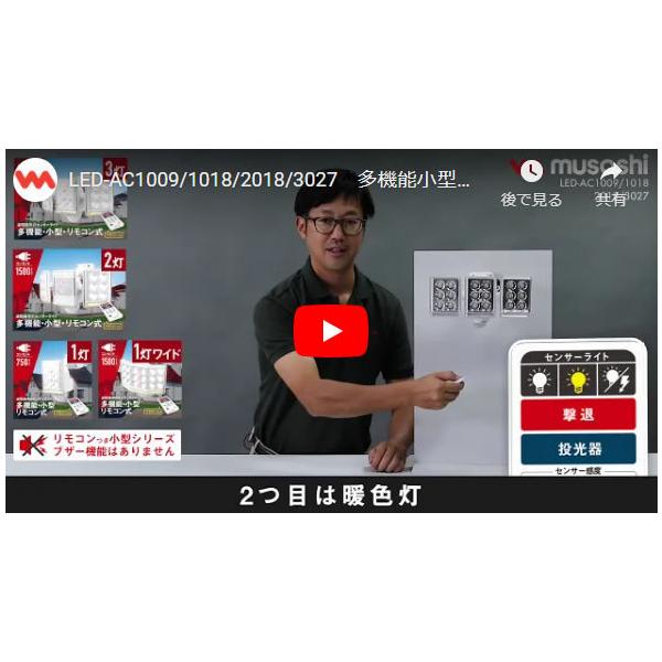 多機能、小型、リモコン式で遠隔操作できるセンサーライト「9W×2灯 フリーアーム式LEDセンサーライト リモコン付 LED-AC2018」です。小型2灯タイプのセンサーライトとしても「あかるい白色光100%」と「やさしい暖色光40%」「ほんのり常夜灯4%」で防犯機能としても、「フラッシュ」「24時間警戒灯」があり、便利な機能として「投光器」としても利用可能です。フリーアーム式で自由な角度に設置可能ですのでセンサーライトとしては文句なしの商品ではないでしょうか?