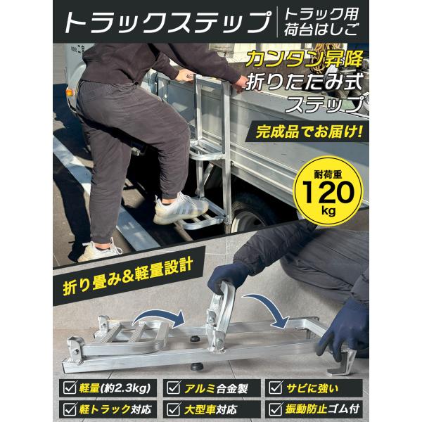 【高耐久アルミ製】トラック昇降ステップは耐荷重120kgで、頑丈なアルミ素材を採用し強度が高く安定した使用が可能。