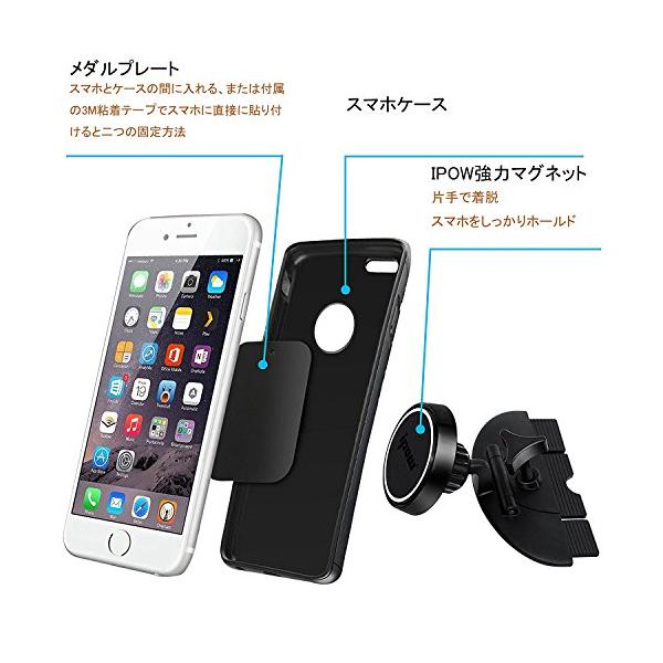 IPOW 車載ホルダー CDスロット取付型 マグネット スマホホルダー 車 360度回転/ 多機種対応/iPad mini対応