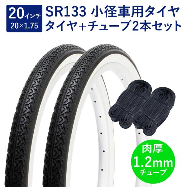 自転車 タイヤ 20インチ スタンダードタイヤ チューブ 各2本セット 英式 バルブ 肉厚チューブ 1.2mm SR133 20×1.75 H/E 黒/白 ペア巻 Shinko シンコー