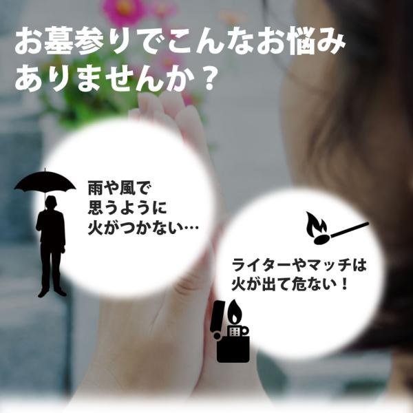 雨や風をものともせず線香にしっかり着火!お墓参りの必需品!