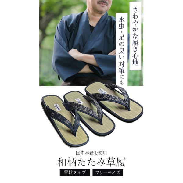 雪駄 メンズ 日本製 人気の和柄 フリーサイズ ~28cm 和柄たたみ草履 雪駄タイプ 紳士用 青海波 井げた 麻の葉