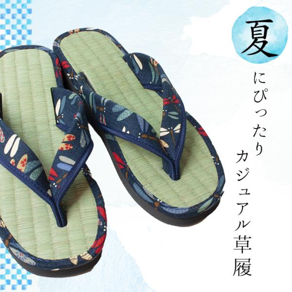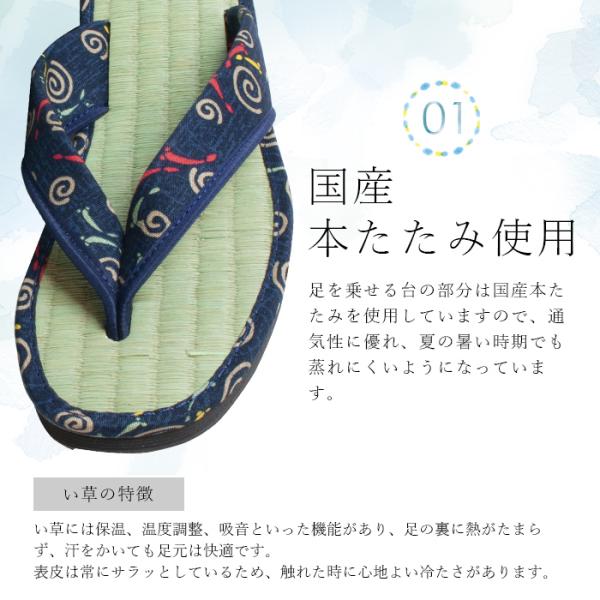 部屋ばき 畳の草履 草履 雪駄 女性 レディース 痛くない 室内 屋外 い草 M/L ネイビー 藍染め 和柄 たたみ草履