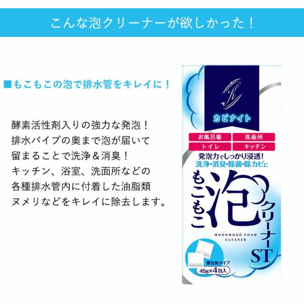 カビナイト もこもこ泡クリーナー パイプ掃除 泡 洗剤 排水溝 つまり ヌメリ取り 45g×4包 パイプクリーナー パイプ洗浄剤