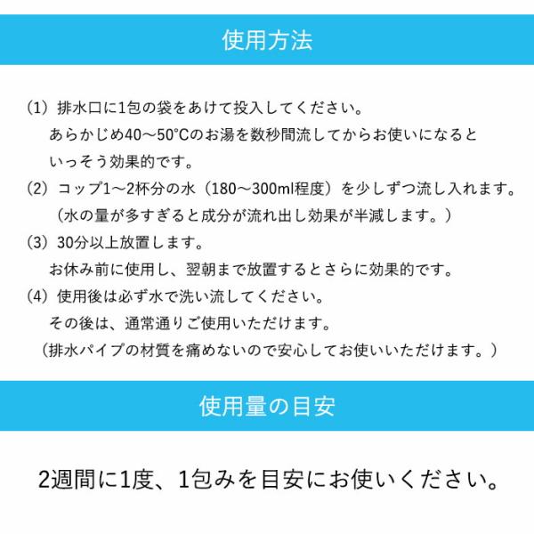 排水パイプ用洗浄剤 トイレ お風呂 洗面所 三角コーナー ヌメリ ヌメリ除去 排水口 油脂汚れ つけ置き 小分け 酸素発泡洗浄剤 炭酸ナトリウム カビ取り キレイ 除菌 もこもこ泡 45g×4包入