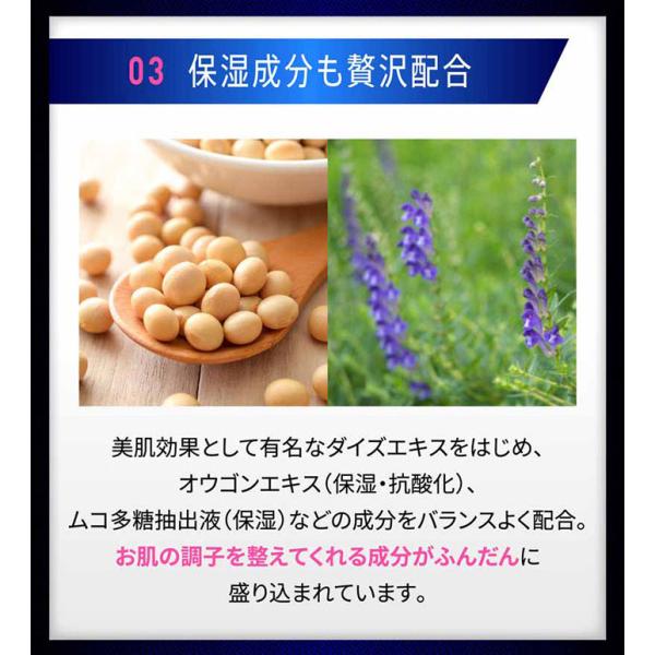 美肌効果として有名はダイズエキズをはじめ、オウゴンエキス・ムコ多糖摘出液をバランスよく配合!