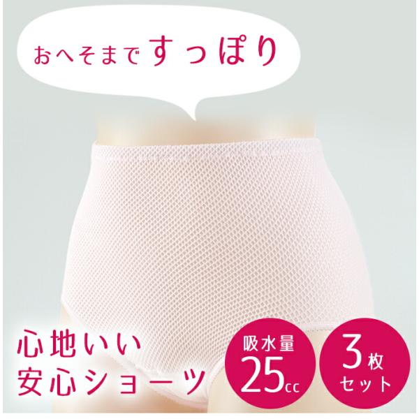 尿漏れパンツ 女性用 レディース ショーツ 3色組 25cc 吸水ショーツ 尿もれ 失禁 しっきんパンツ 安心ショーツ 深ばき