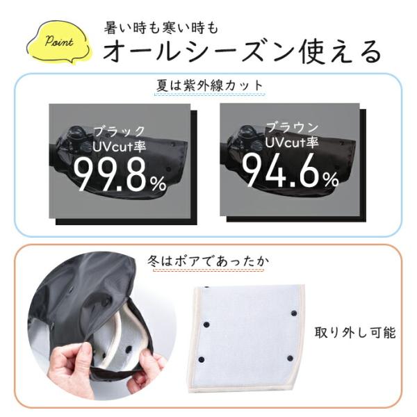 寒い季節は防寒対策として。暑い時期にはUV対策としても使用していただけます。