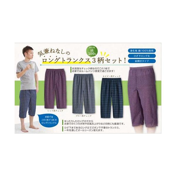 3枚セット トランクス メンズ 下着 前開き セット チェック柄 綿100%先染めロングトランクス ひざ下丈 男性 ステテコ ルームパンツ ルームウェア 綿100%