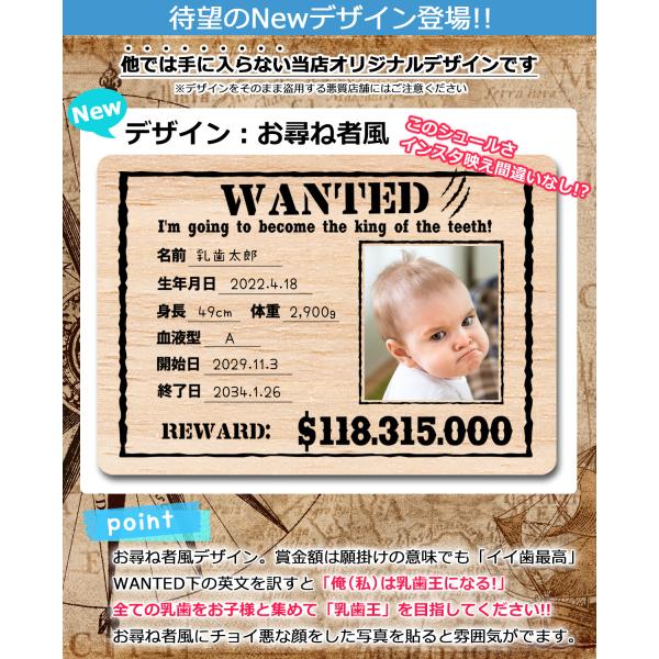 オリジナルデザイン乳歯ケース 免許証風 シンプル 成長 WANTED