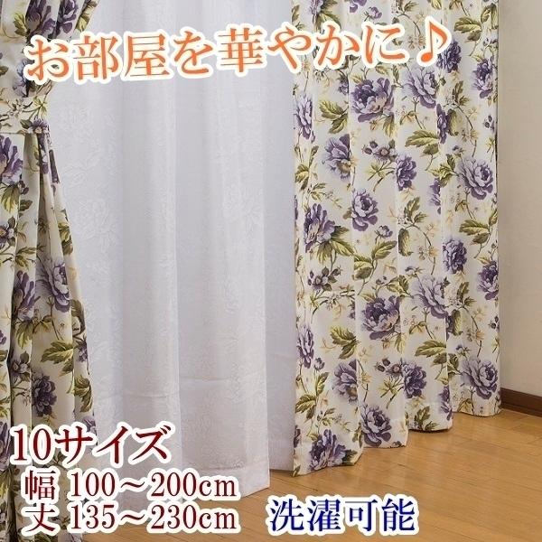 洗える ウォッシャブル カーテン 可愛い ローズ 2枚組 新生活