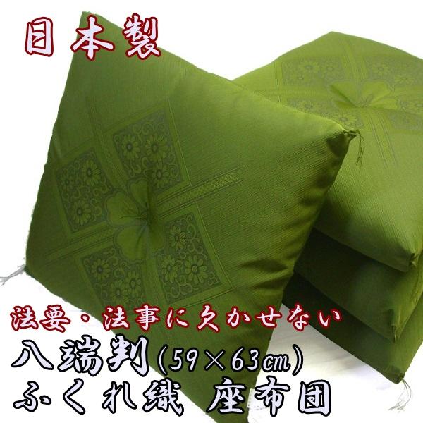 八端判 ふくれ織 座布団 1枚 厚地 法事 法要 高級 グリーン 緑 仏前 仏壇 お寺 国産 綿入り 和柄 和室 洋室 フローリング 来客 盆 和座布団