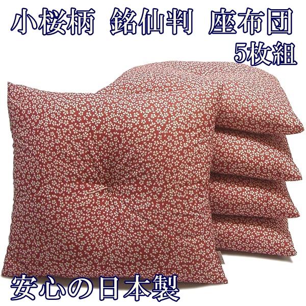 銘仙判 小桜 座布団 5枚組 55×59cm 国産 綿入り 和柄 和室 洋室 フローリング おしゃれ 日本製 盆 法要 旅館 料亭 居酒屋 業務用 お客様 まとめ買い ローズ