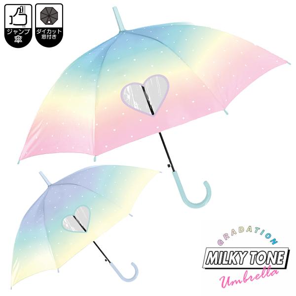キッズ雨傘 ミルキートーン 子供長傘 ダイカット窓開き 55cm ジャンプ傘 子供 なまえ欄付き