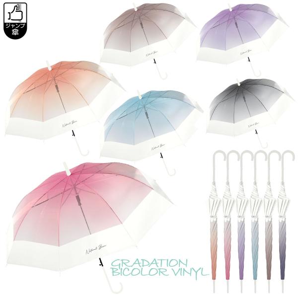 グラデーションバイカラービニール 60cm ジャンプタイプ 雨傘 ビニール傘 透明傘 ツートン 切り替え おしゃれ かわいい SNS映え 女性 レディース 婦人