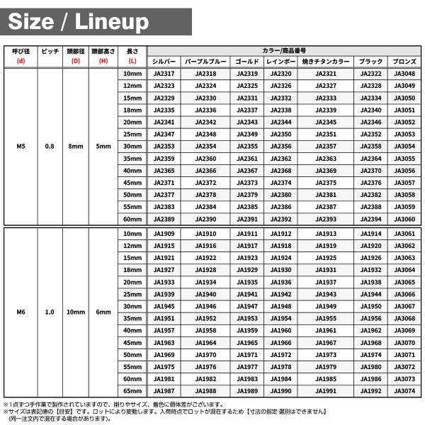 チタンボルト M6×20mm P1.0 ストレートキャップボルト スリムヘッド 六角穴付き ブラック 1個 JA1938